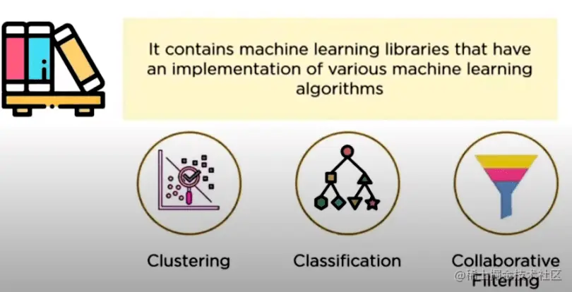 创建MLlib背后的动机是使机器学习可扩展和容易。它包含有各种机器学习算法的实现的机器学习库。例如,聚类、回归、分类和协同过滤。一些低级别的机器学习基元,如通用的梯度下降优化算法,也存在于MLlib中。