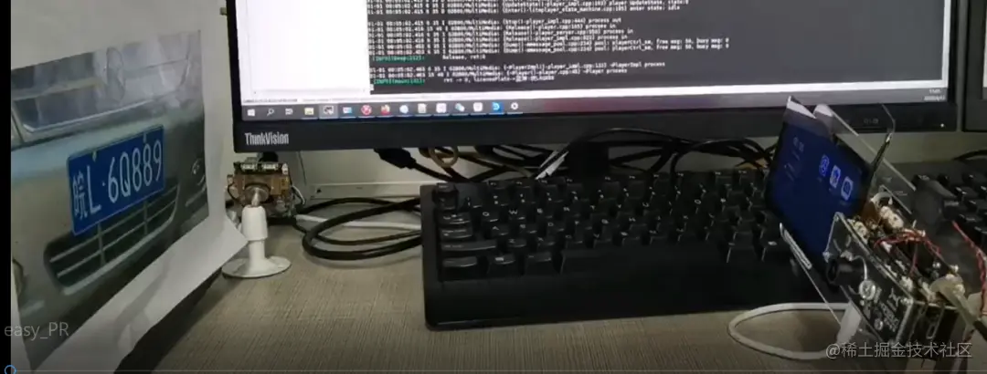 首先将 Hi3516 中的摄像头对准车牌,其距离约为 60cm~70cm 如下所示: