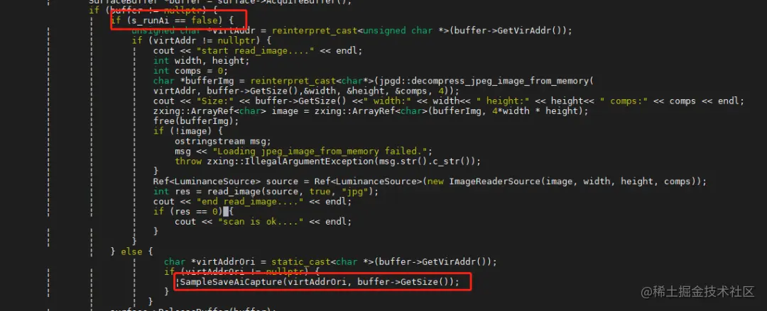 进行拍照后会进入拍照数据处理,当 s_runAi 为 false 说明是二维码识别,直接调用二维码识别接口即可。当 s_runAi 为 true 时须将拍照的数据保存为图片: