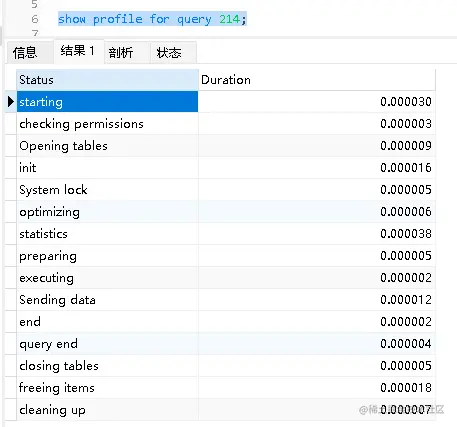 -- 查看指定query_id的SQL语句各个阶段的耗时情况