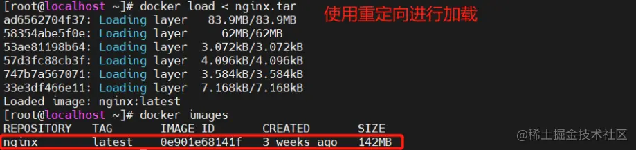 方法二:docker load < 存出的镜像文件 #重定向输入给存出的镜像文件