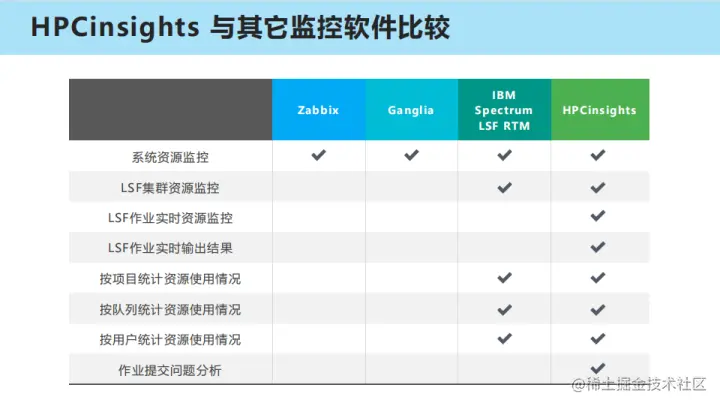 HPCinsights 是一款对 HPC 集群进行监控和智能分析的软件,不仅具备常见的系统监控能力,也可以在作业资源分析、多维度资源统计和作业资源实时监控等方面,实现快速发现 HPC 集群存在的配置和使用问题,全面掌控集群资源状况,优化集群资源分配。
