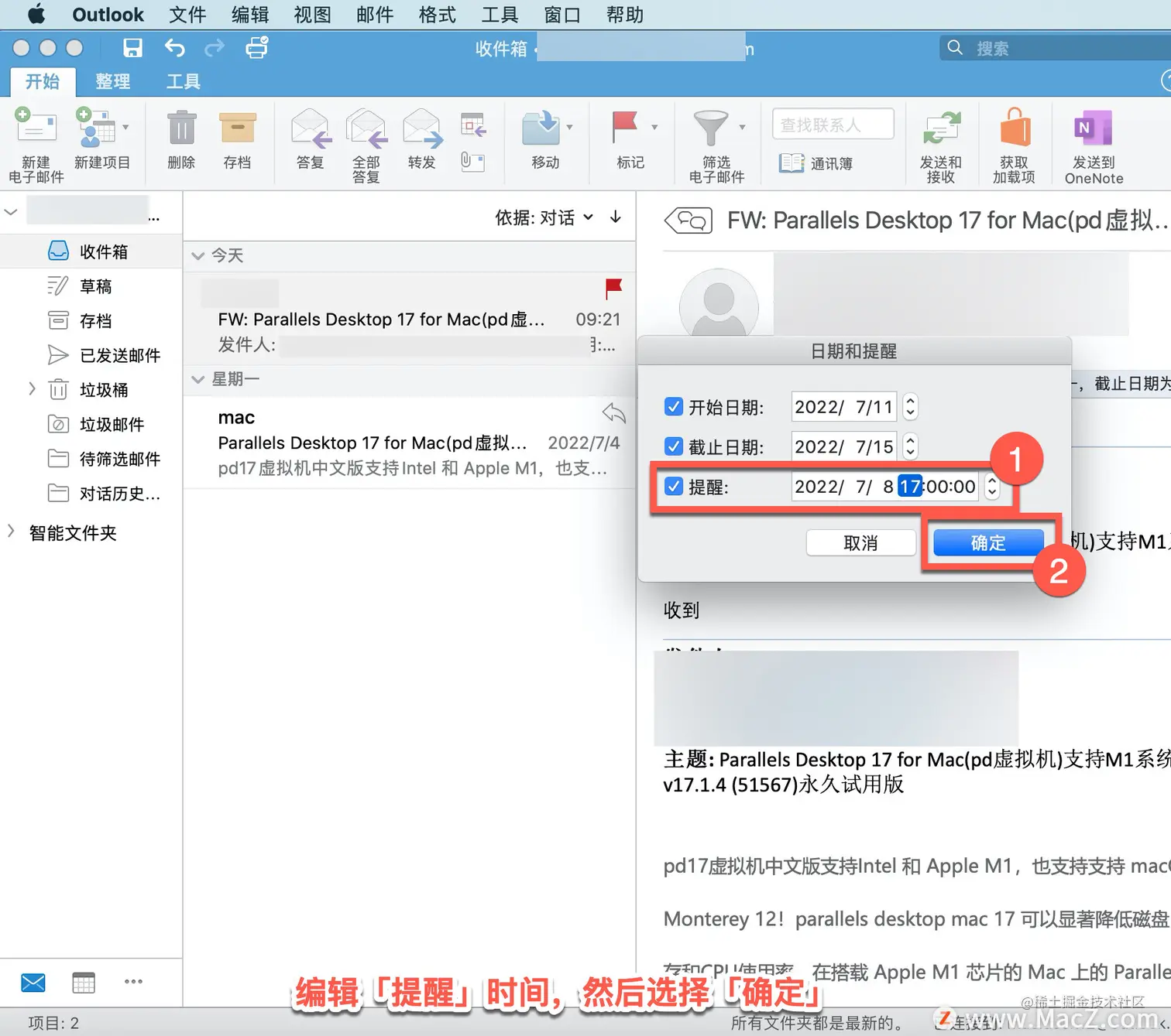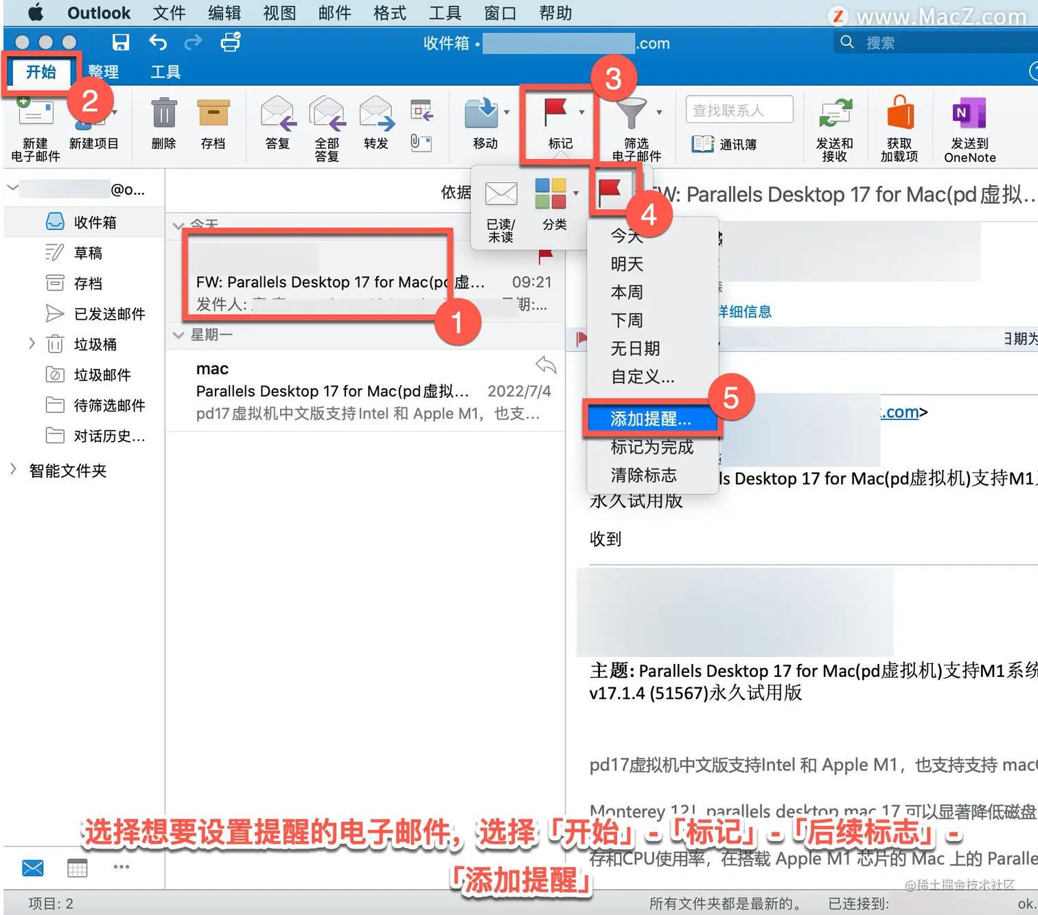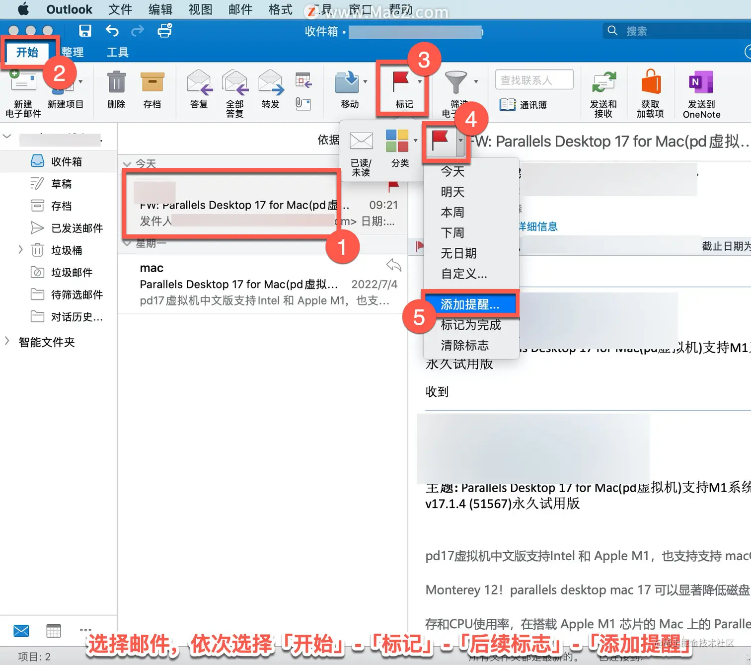 在 Outlook 中,可以添加标志、设置已标记电子邮件的提醒。