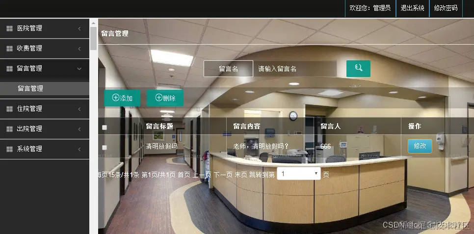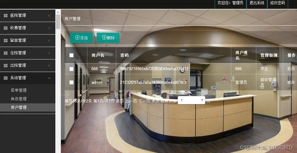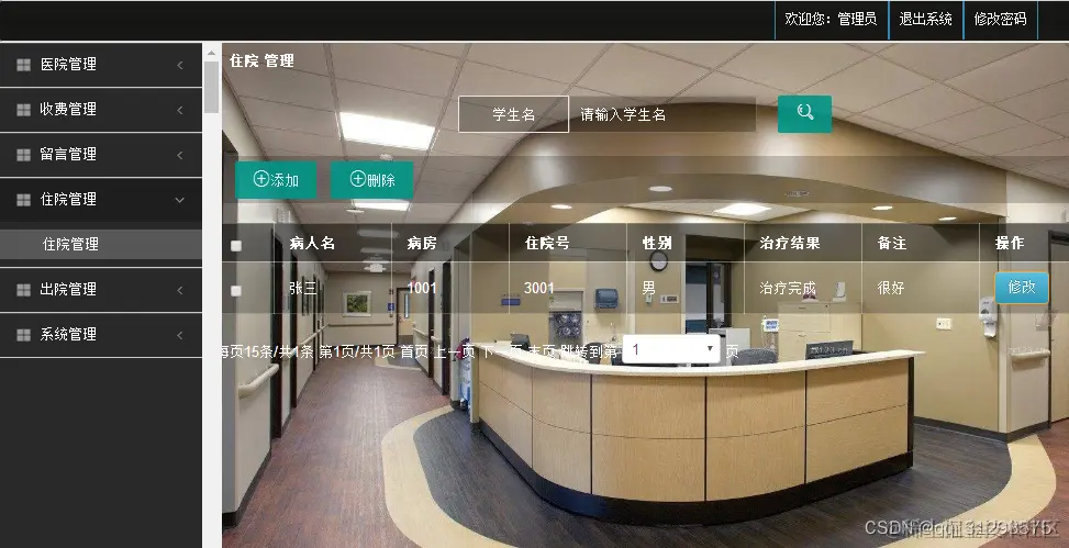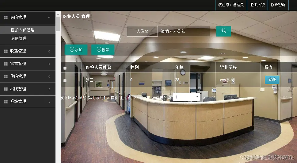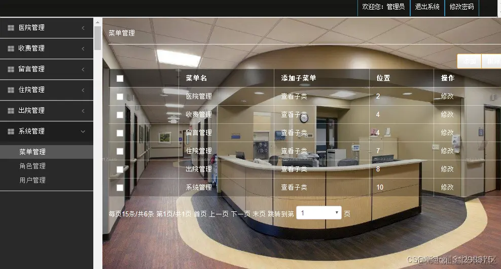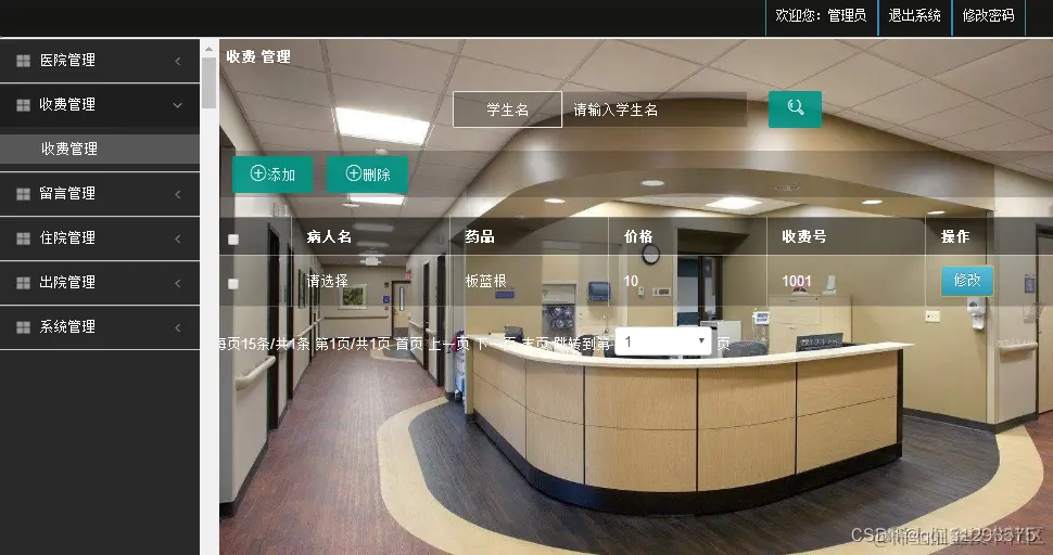具体说来,要求本系统具有以下六个功能模块:科室管理模块、病人管理模块、药品及耗材管理模块、科室信息模块、数据管理、财务管理。