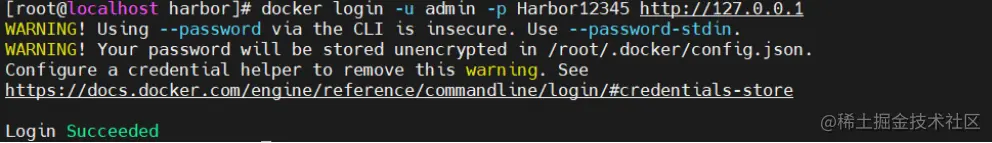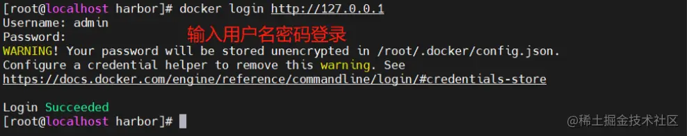 docker login -u admin -p Harbor12345 http://127.0.0.1