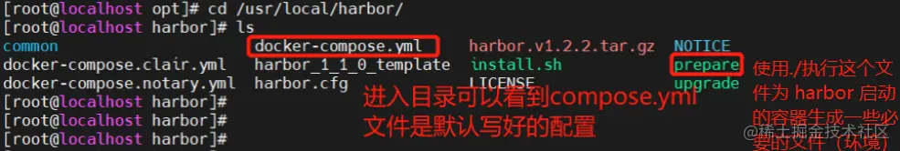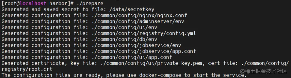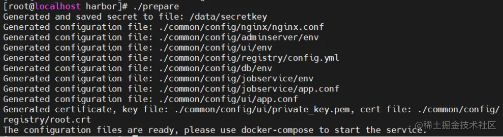 #在配置好了 harbor.cfg 之后,执行 ./prepare 命令,为 harbor 启动的容器生成一些必要的文件(环境)