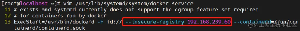 ExecStart=/usr/bin/dockerd --insecure-registry 192.168.239.60
