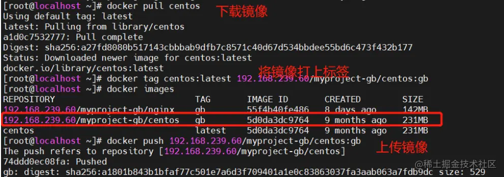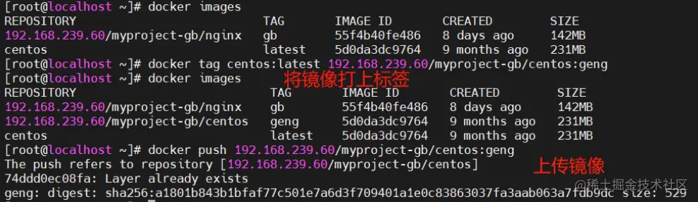 docker tag centos:latest 192.168.239.60/myproject-gb/centos:gb