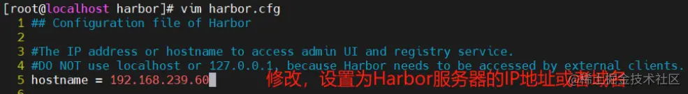 --5行--修改,设置为Harbor服务器的IP地址或者域名