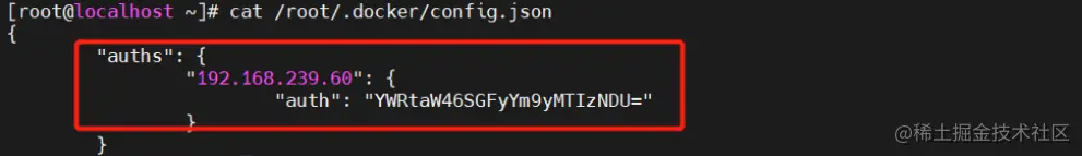 将自动保存凭据到/root/.docker/config.json,下次登录时可直接使用凭据登录 Harbor