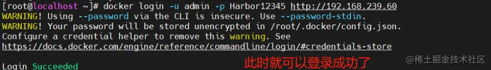 [root@localhost ~]# docker login -u admin -p Harbor12345 http://192.168.239.60