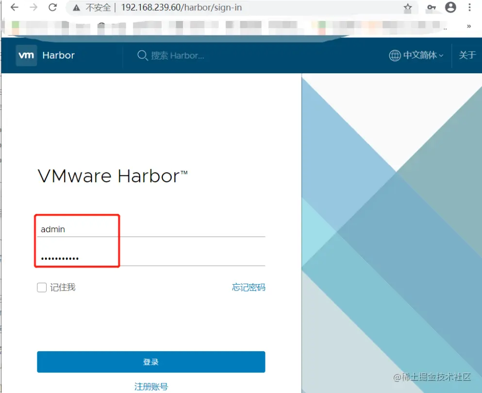 登录 Harbor
