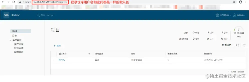 再次登录 Harbor