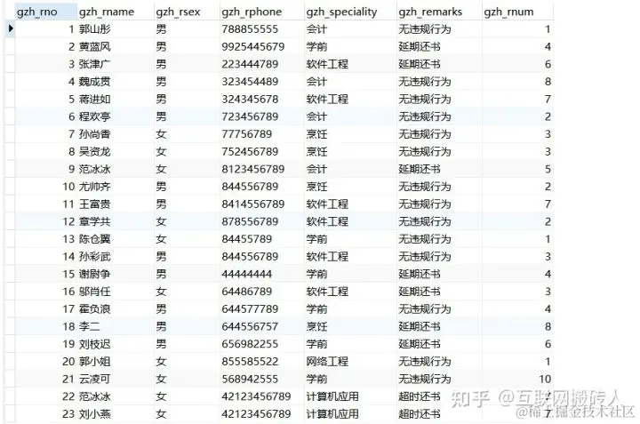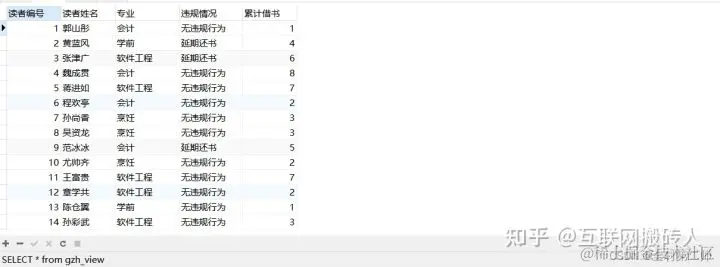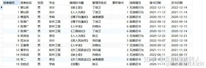 读者(读者编号,读者姓名,性别,联系电话,专业,违规情况,累计借书)