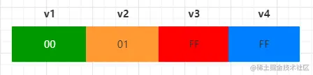 如果我们程序中定义了四个这样的变量,它们的值在内存中是如何存储的呢?