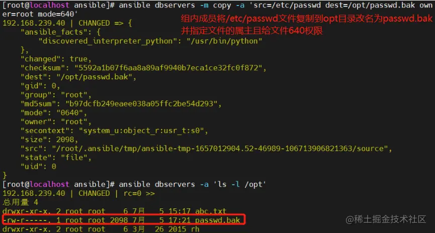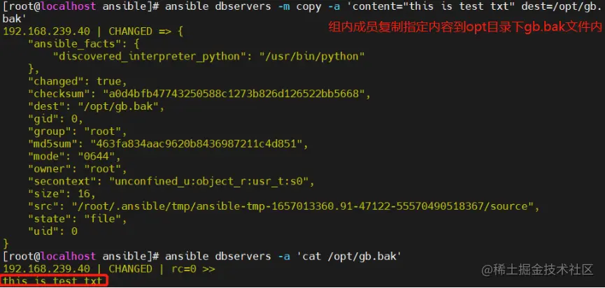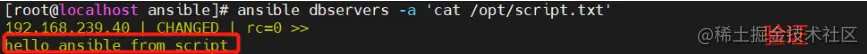 ansible dbservers -a 'cat /opt/script.txt' #查看生成的文档内容