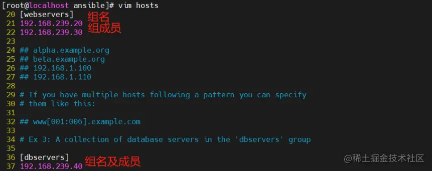 Inventory支持对主机进行分组,每个组内可以定义多个主机,每个主机都可以定义在任何一个或多个主机组内。