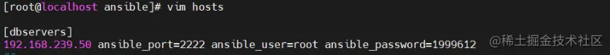 192.168.239.50 ansible_port=2222 ansible_user=root ansible_password=1999612