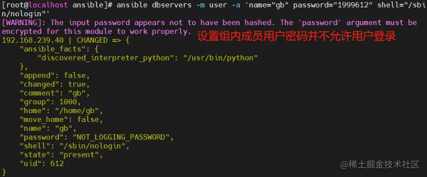 ansible dbservers -m user -a 'name="gb" uid=612 groups=wheel'