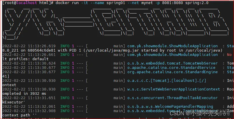 docker run -it --name spring01 --net mynet -p 8081:8080 spring:2.0