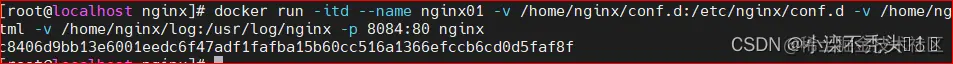 --name nginx01 \ -v /home/nginx/conf.d:/etc/nginx/conf.d \ -v /home/nginx/html:/etc/nginx/html \ -v /home/nginx/log:/usr/log/nginx \ -p 8084:80 \ nginx
