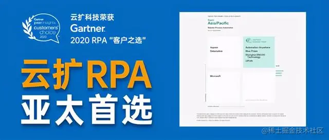 凭借突出的产品实力和完善的服务体系,以及来自众多客户的认可 ,云扩科技成为亚太地区唯一荣获2020 Gartner “客户之选”的RPA厂商。