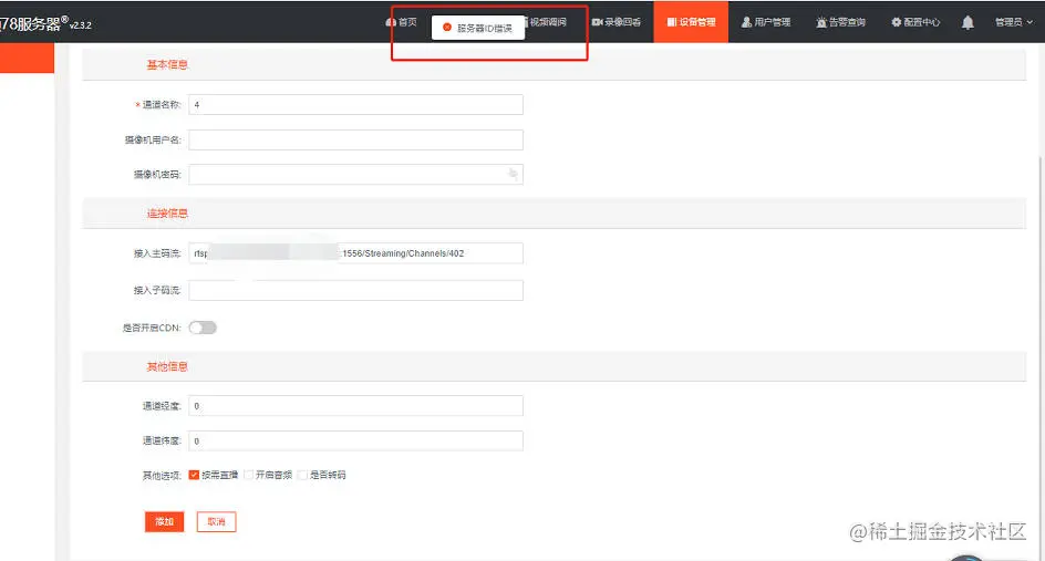 进一步排查,是数据库缺少字段,子集群版本中需要配置server id的字段到数据库,如果没有配置,就会出现设备找不到对应的服务器,在播放时,就会出现上述问题。因此在切换集群版本时,需要手动对数据库进行更改,若直接使用的是集群版本,则直接接入即可,后台会对接入设备进行自动编辑。