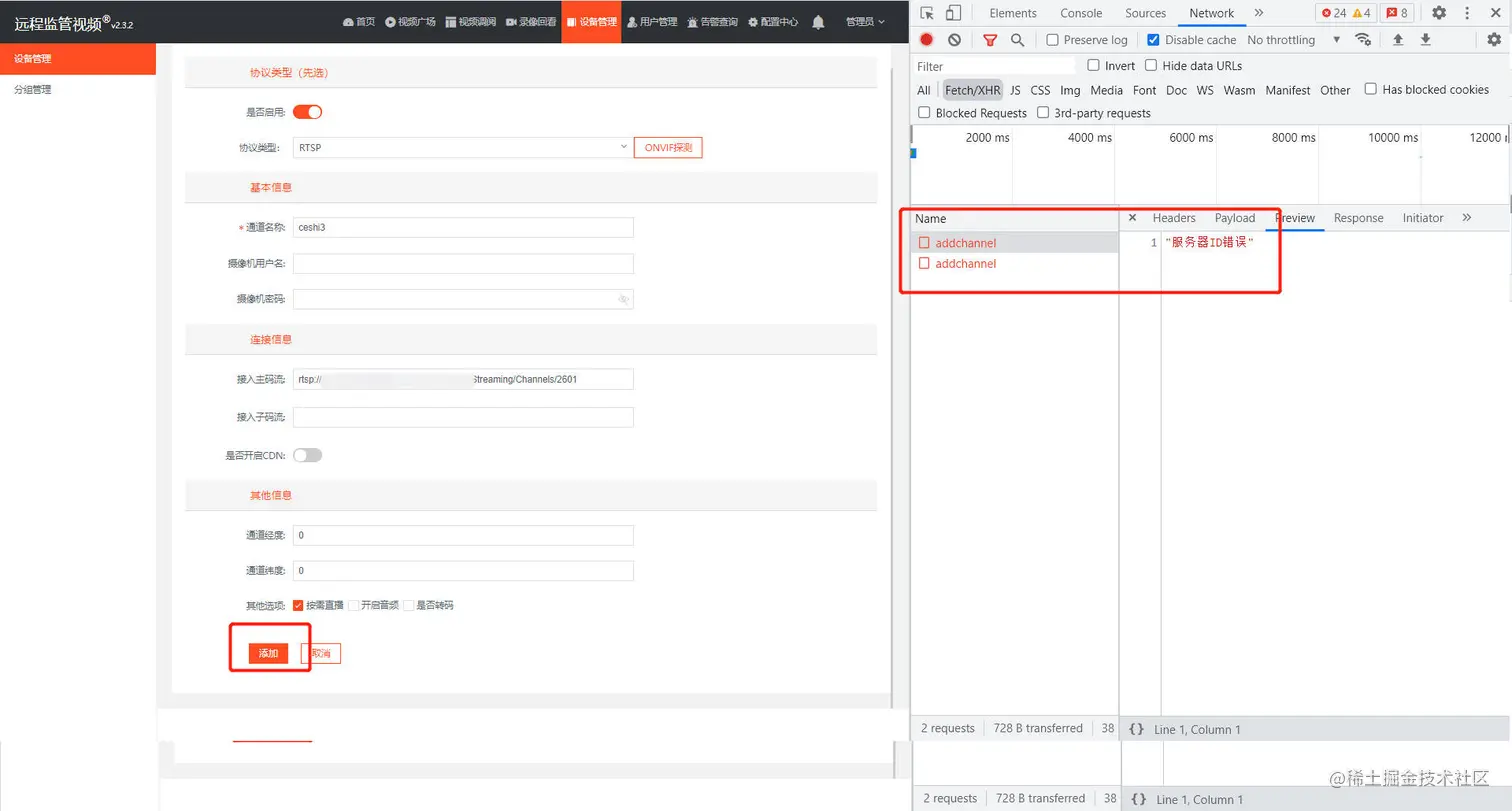 EasyCVR平台的集群功能已经发布了一段时间,集群高效的协作特点促使很多用户已经开始部署集群的版本。有用户反馈在现场测试的过程中添加RTSP协议的设备时,出现提示服务器ID错误的报错,导致无法正常将设备添加进去。
