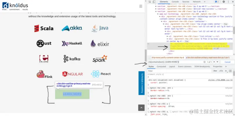 findElement(By.xpath("//a[contains(text(),'LEARN MORE')]")