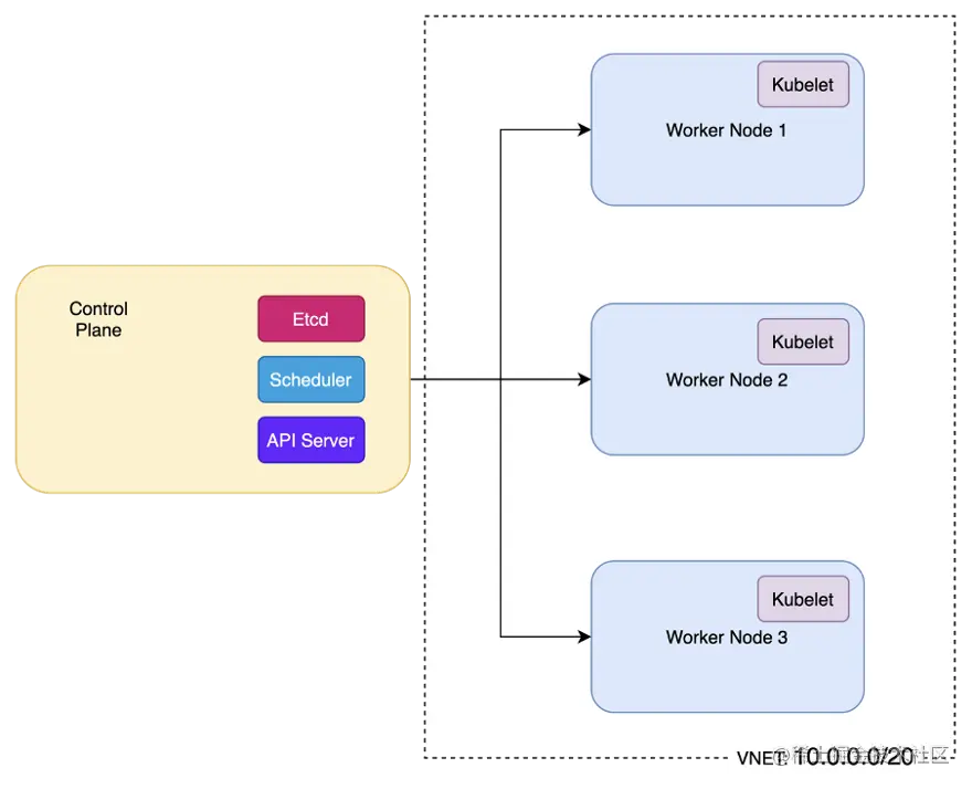 工作节点在VNET内,所以它们从外部世界联系的唯一方式是通过API服务器,当使用kubectl命令或我们创建一个负载平衡器时。
