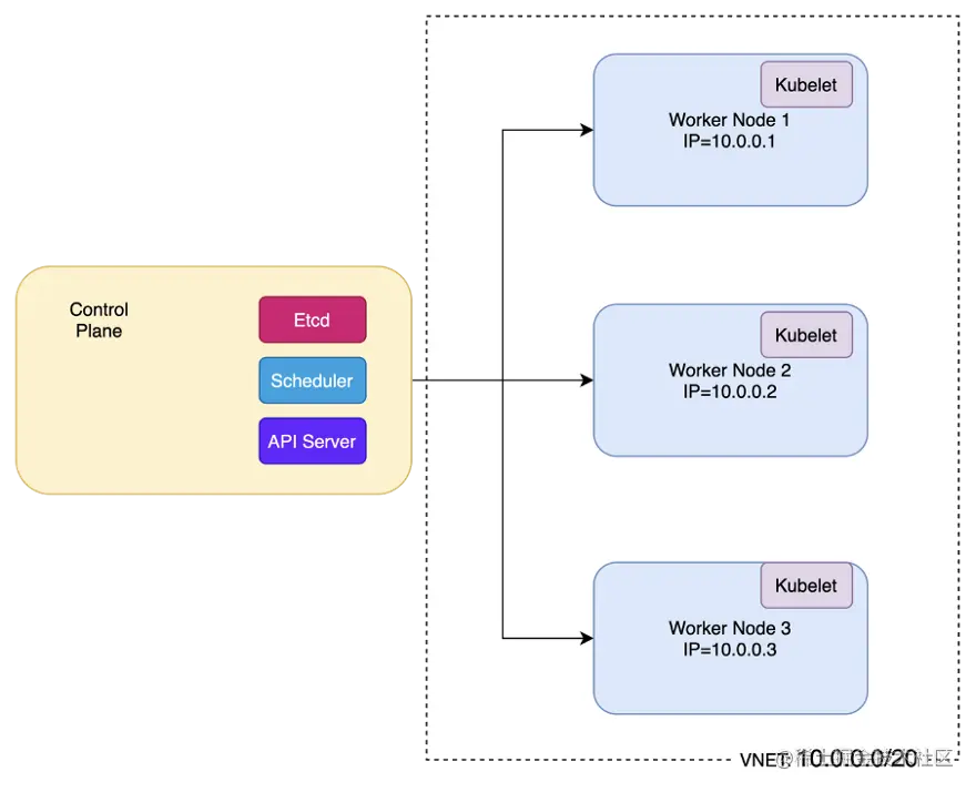 现在我们已经分配了三个IP地址。你会注意到,控制平面不在VNET内**。**