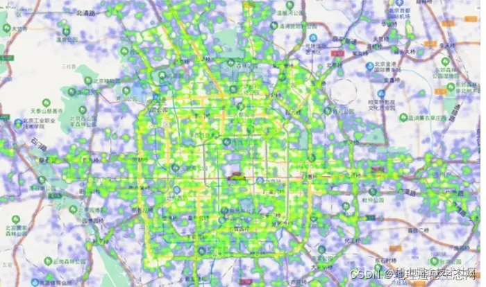 人口热力图,是反映人群聚集情况的大数据可视化产品,它以用户在使用定位功能时的地理位置数据为基础,通过一定的空间计算,并在地图上进行叠加。