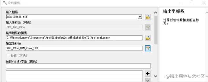 投影:ArcToolbox-数据管理-投影栅格