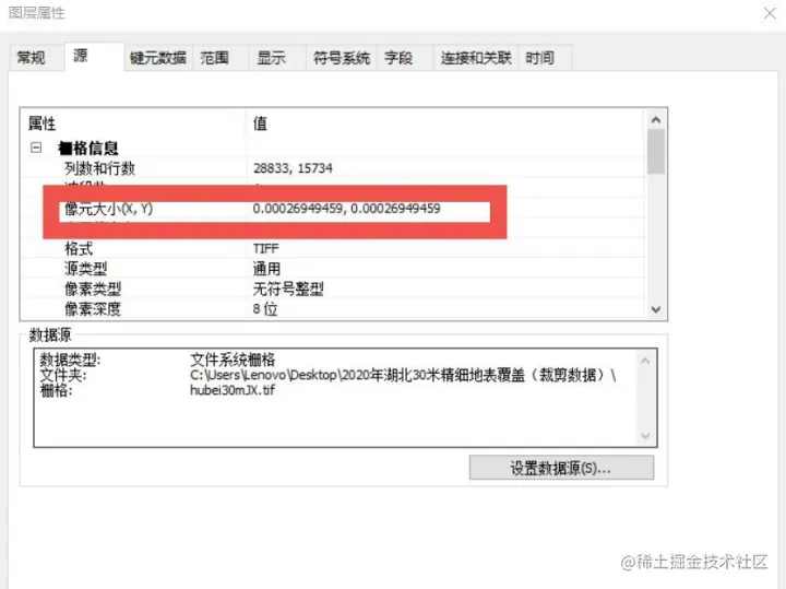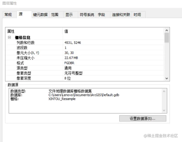 采样结果可以打开图层属性查看(像元大小一列变为30,30)