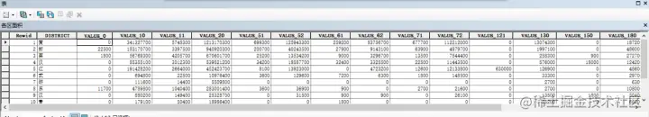 然后按照实验需求导出表格就可以了,以上统计武汉市各行政区内各土地利用类型的面积就完成了,下面将介绍处理过程中遇到的问题: