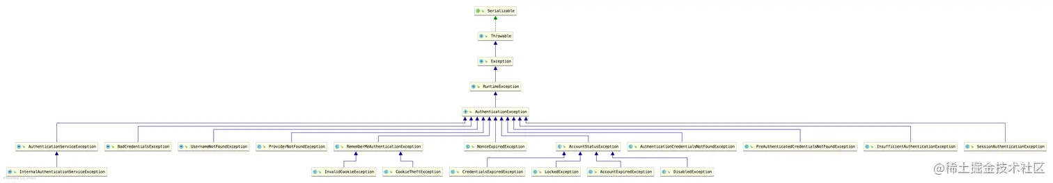 认证异常就是 AuthenticationException,它有众多的实现类: