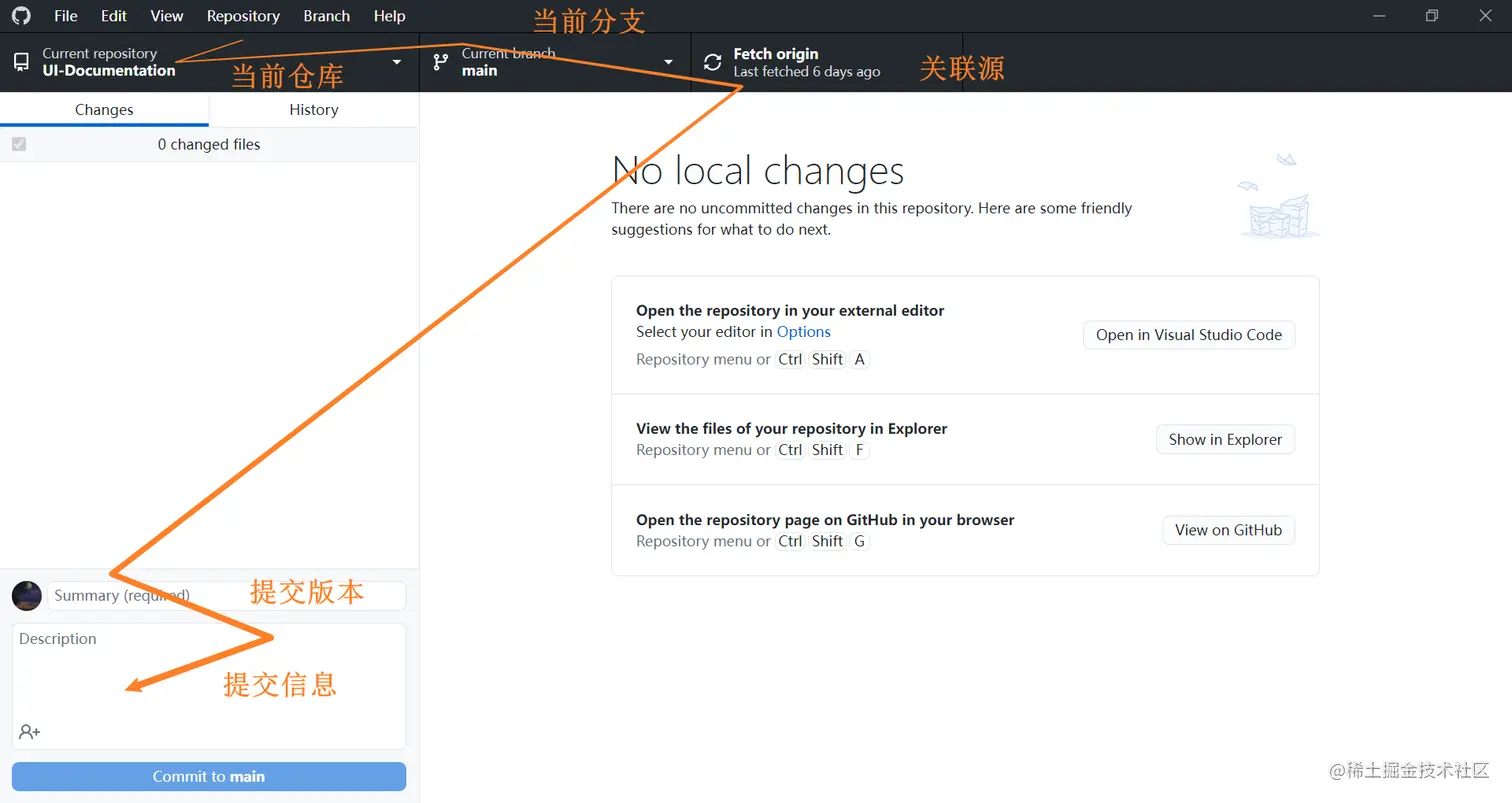 - git merge/ git rebase 合并分支 如果使用github desktop就通过可视化的提交 然后填写版本号以及提交信息就可以;使用git bash就通过上述的基本方法进行添加至暂存区->提交->push;多人开发就是一开始就pull拉取项目,之后完成自己的业务代码就push。