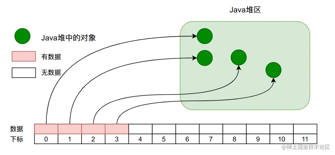 当我们在Java当中使用数组去存储数据时,数据在Java当中的内存布局大致如下图所示。