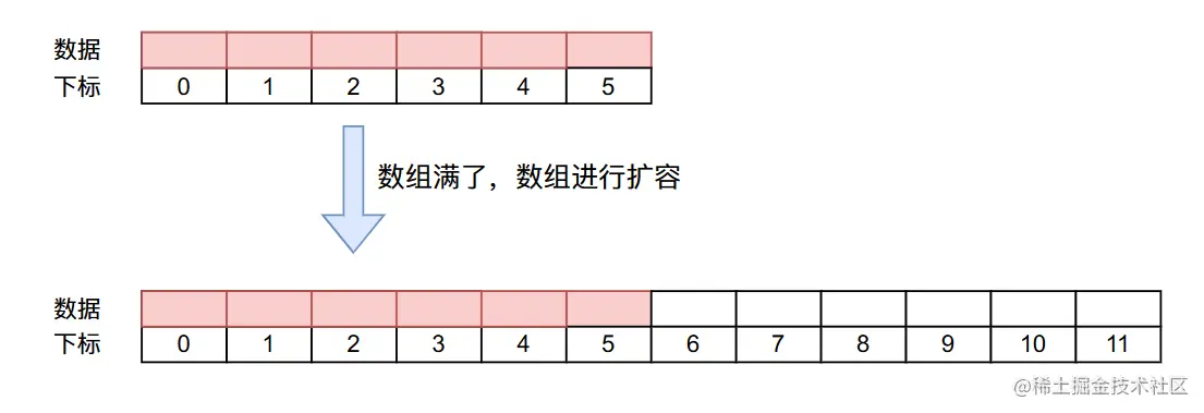 - 当数组满了之后怎么办,也就是我们的扩容机制。