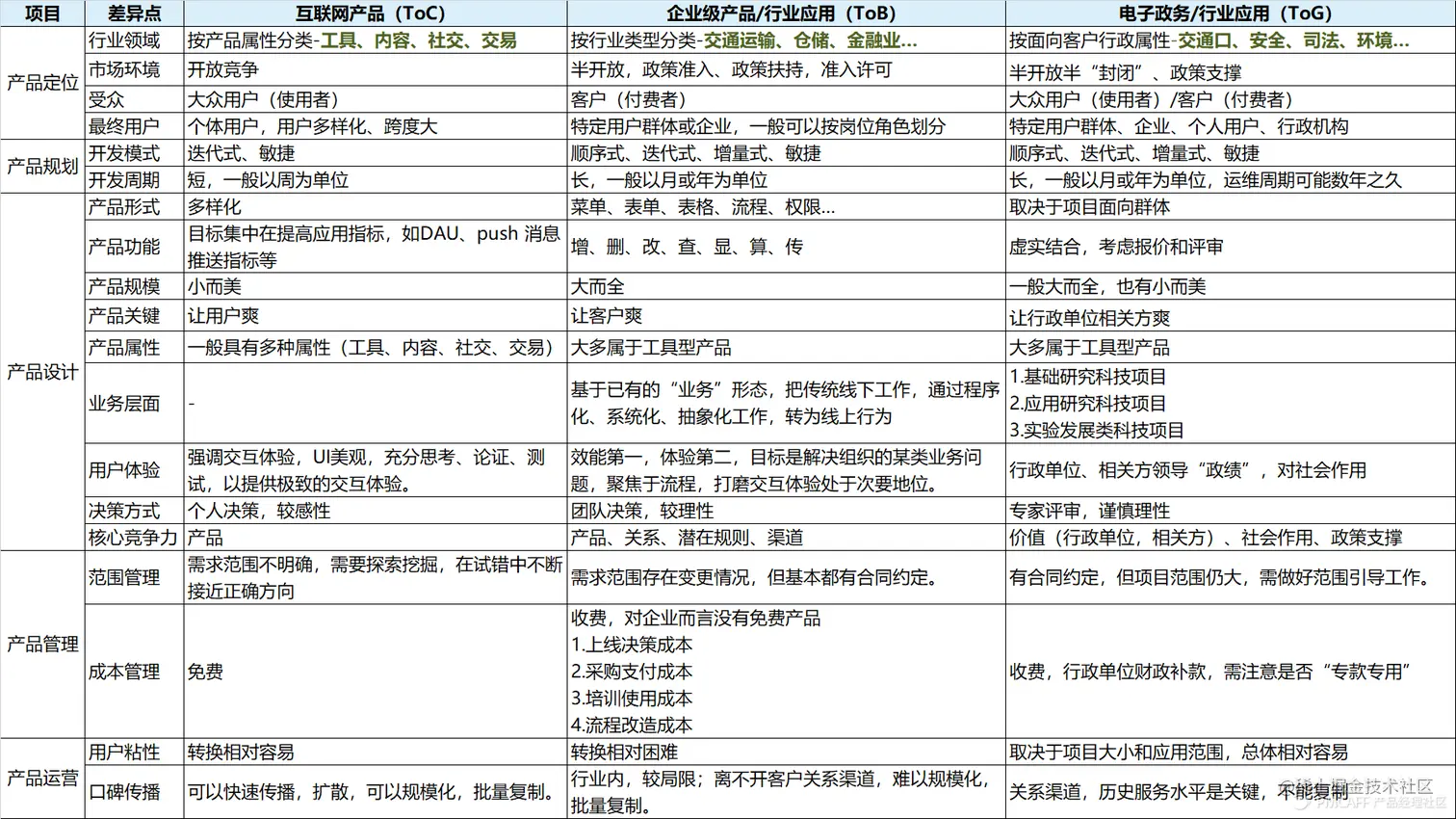 ToC互联网产品一般具有多种属性(工具、内容、社交、交易),而ToB企业级产品/行业应用、ToG电子政务/行业应用一般都具有工具属性。