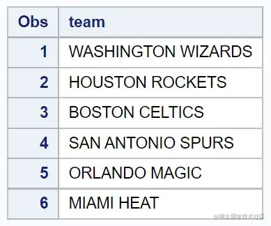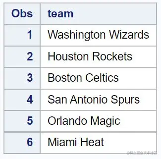 请注意,每个球队的名字都被转换为小写。