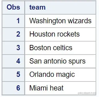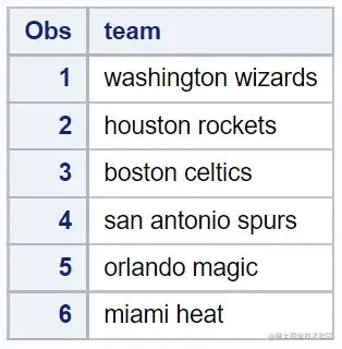 请注意,每个球队的名字都被转换成了大写字母。