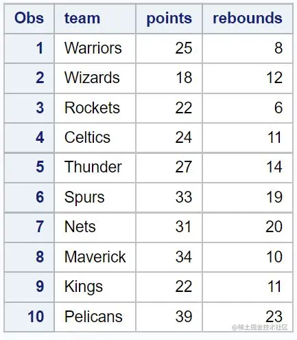 下面的例子展示了如何在SAS中用以下数据集来使用每种方法: