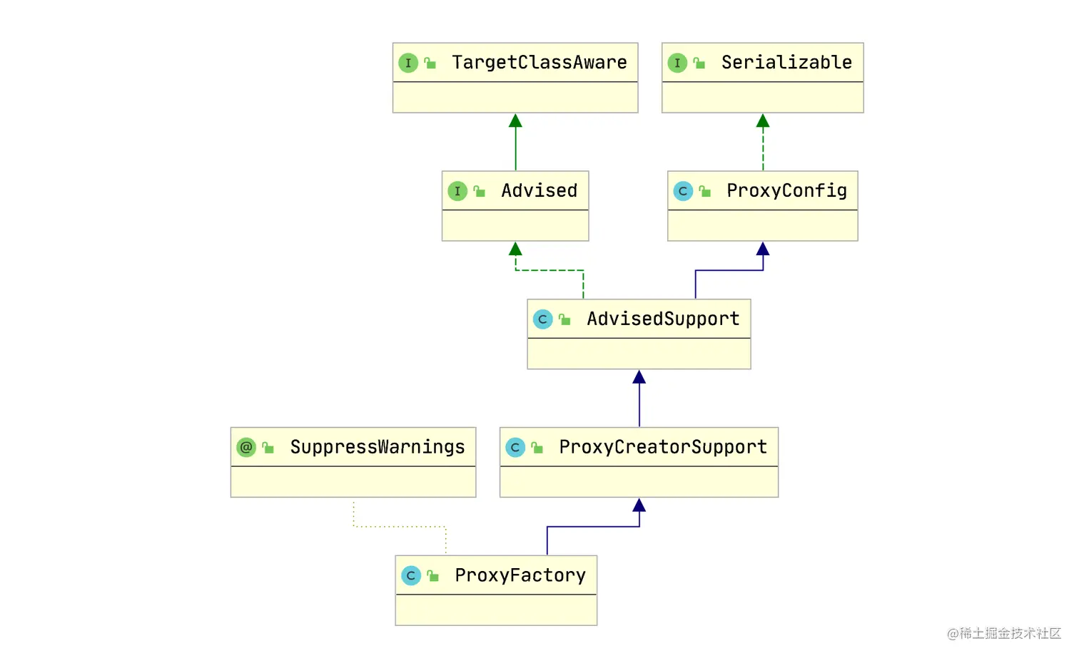 - 上文我们介绍了Spring AOP原理解析的切面实现过程(将切面类的所有切面方法根据使用的注解生成对应Advice,并将Advice连同切入点匹配器和切面类等信息一并封装到Advisor)。本文在此基础上继续介绍,代理(cglib代理和JDK代理)的实现过程。
