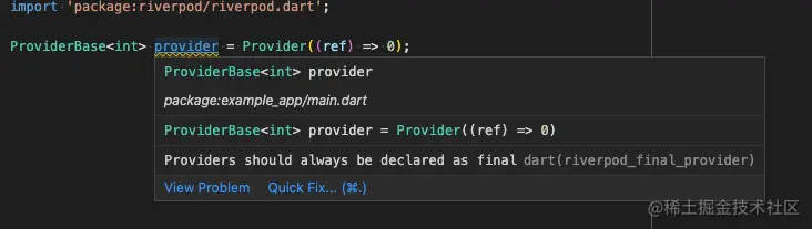 正如你在上面的例子中看到的,我现在已经定义了riverpod_final_provider规则,以确保提供者被定义为final关键字。
