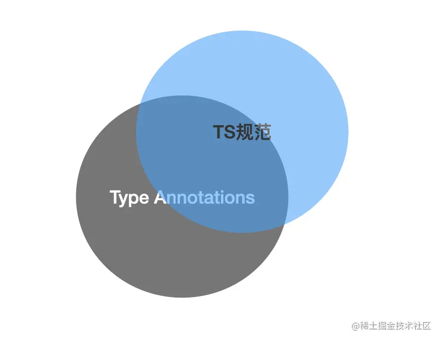 所以,Type Annotations还有一部分特性是TS当前未定义的,这也是为了规范更广泛的适用性考虑的,也就是图中Type Annotations存在,而TS不存在的部分。