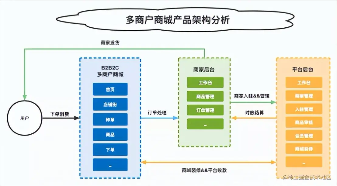 多商户商城的典型产品架构设计如下图: