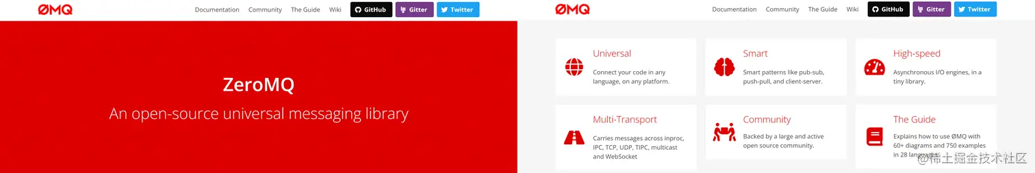 ZeroMQ轻量级消息传递内核是一个库,它用传统上由专门的消息传递中间件产品提供的功能扩展了标准套接字接口。ZeroMQ套接字提供了一个异步消息队列的抽象,多种消息传递模式,消息过滤(订阅),对多种传输协议的无缝访问等等。