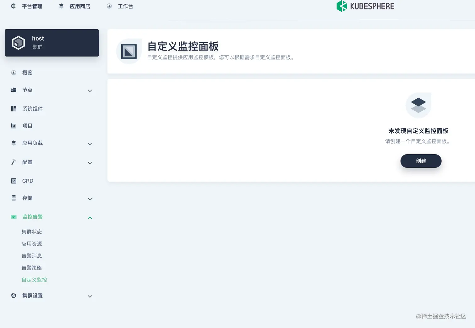 我们可以访问-集群-> 监控告警-> 自定义监控进入,如图所示: