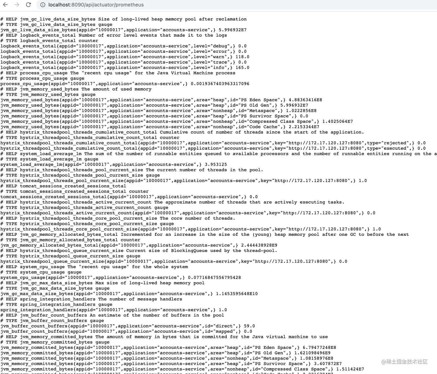 当我们运行编写好的程序后,通过访问 http://localhost:8090/api/actuator/prometheus 可以看到类似如下数据,其中就有我们通过配置添加的 tag 数据,后续我们部署的 monitor 会通过如下地址将数据采集到 Prometheus 中。
